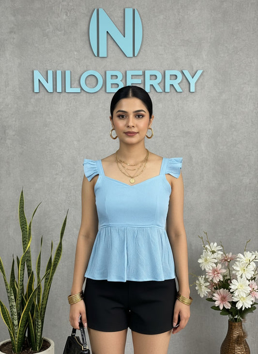 Trendy Peplum Top for Women | Stylish Sleeveless Ruffle Strap Western Top