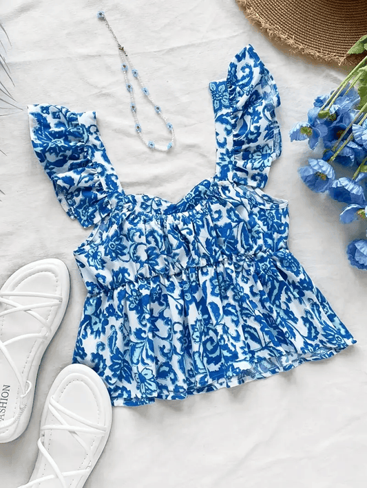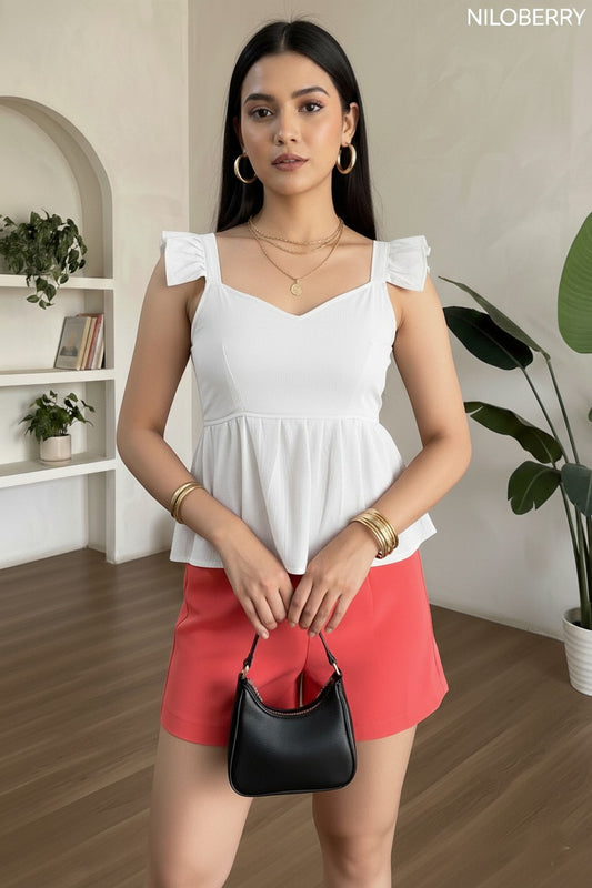 Trendy Peplum Top for Women | Stylish Sleeveless Ruffle Strap Western Top