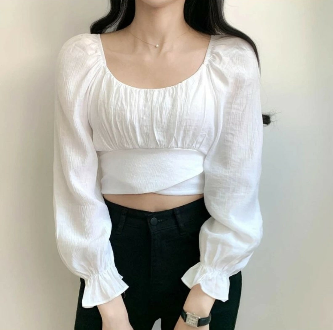 NiloBerry textured fabric, round neck, bishop sleeve Crop top