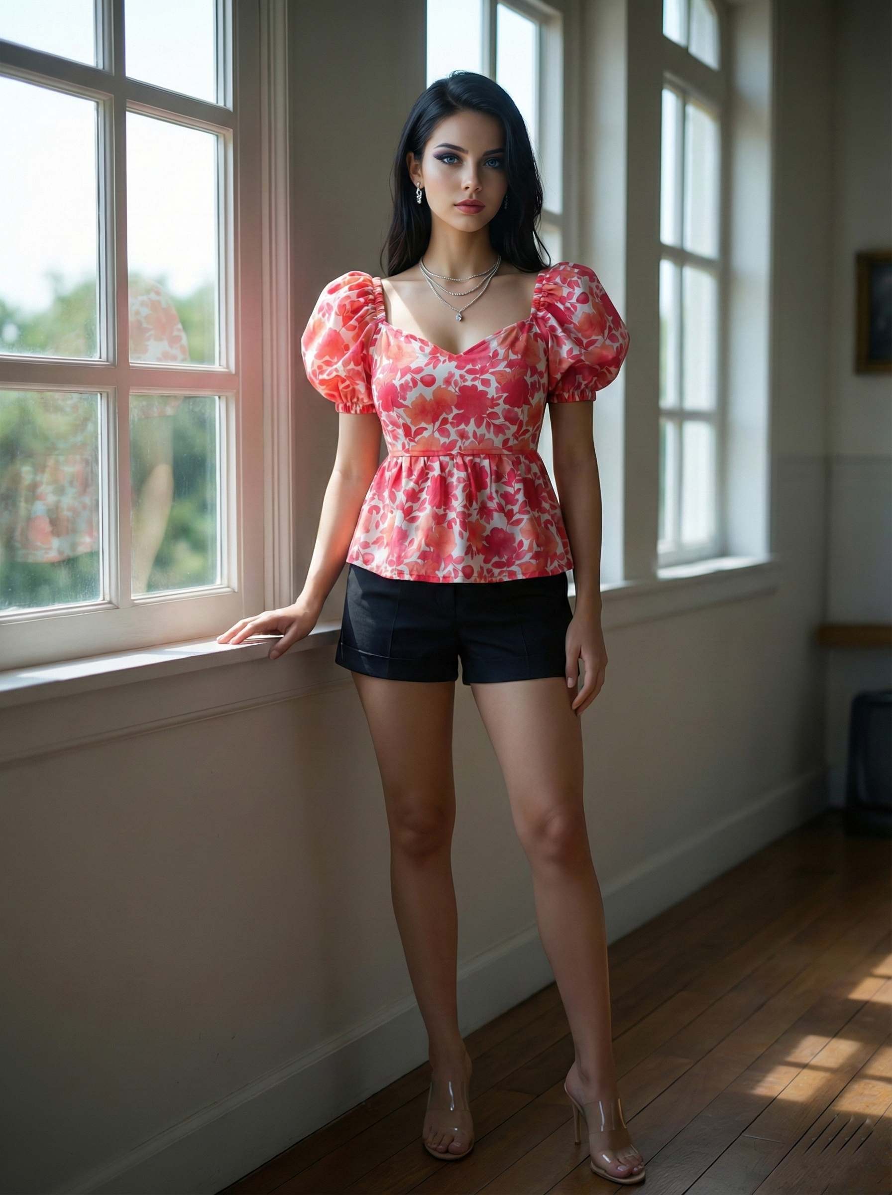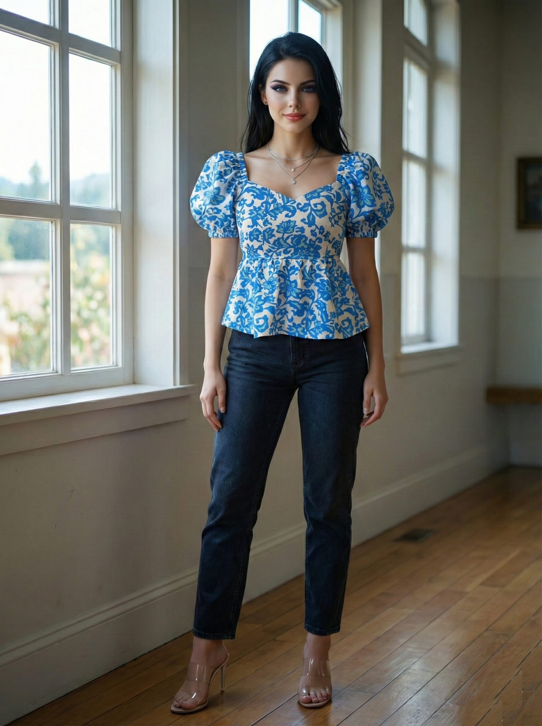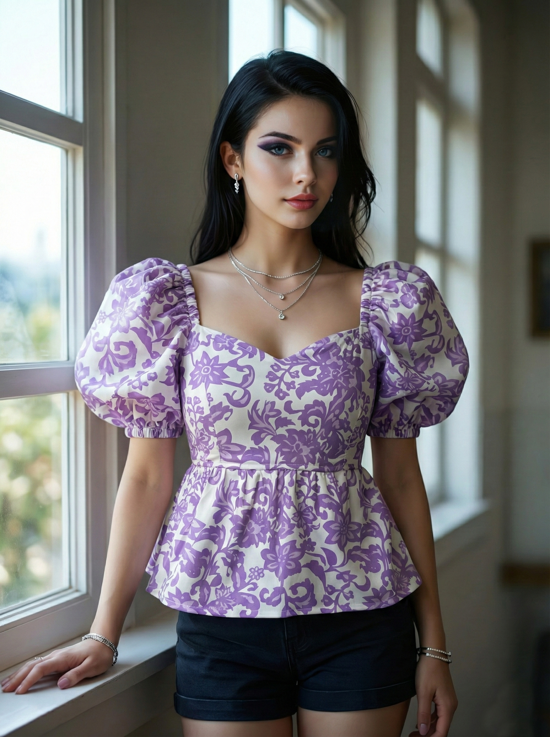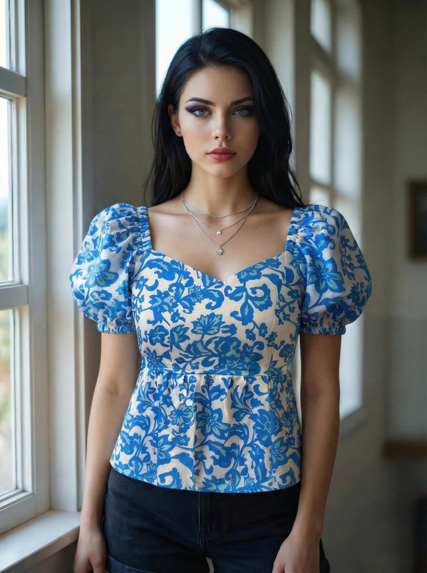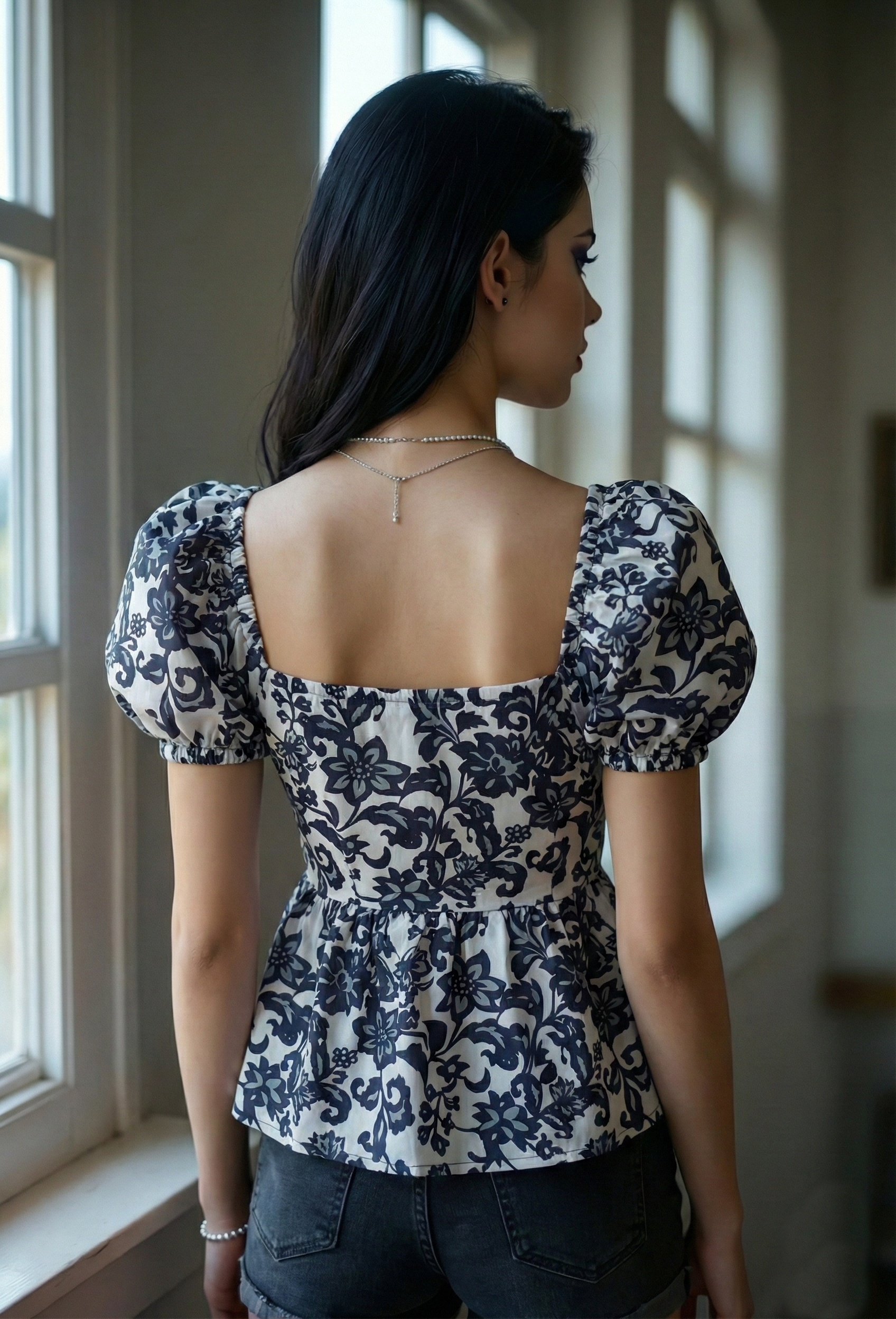This women's floral puff-sleeve crop top showcases refined craftsmanship with its delicate botanical print and voluminous sleeve design. The puffed sleeves create an elegant frame for the shoulders, while the cropped length offers a modern proportion that pairs effortlessly with high-rise silhouettes. Premium fabric construction ensures durability and comfort, allowing you to wear this piece season after season. The versatile floral pattern complements various color palettes, making it a strategic addition to any curated wardrobe. An investment piece that balances contemporary trends with enduring style.